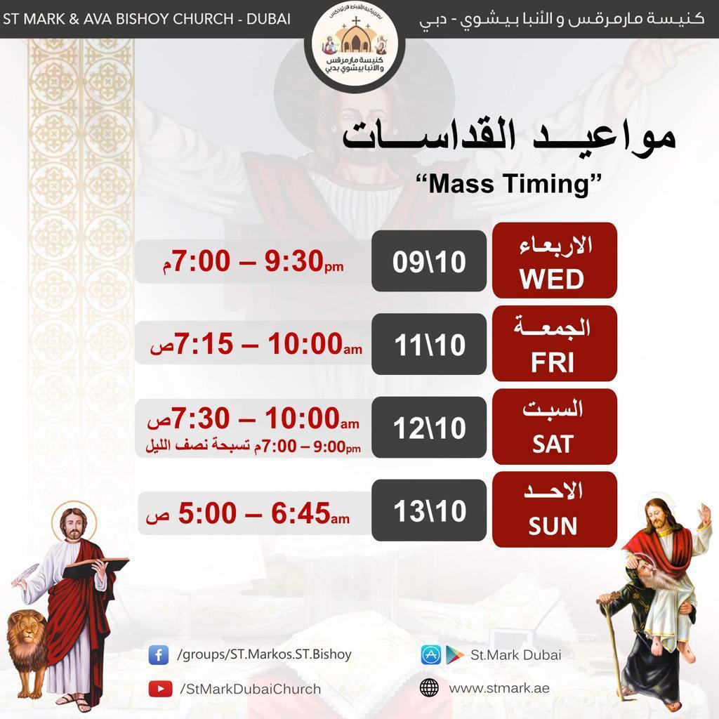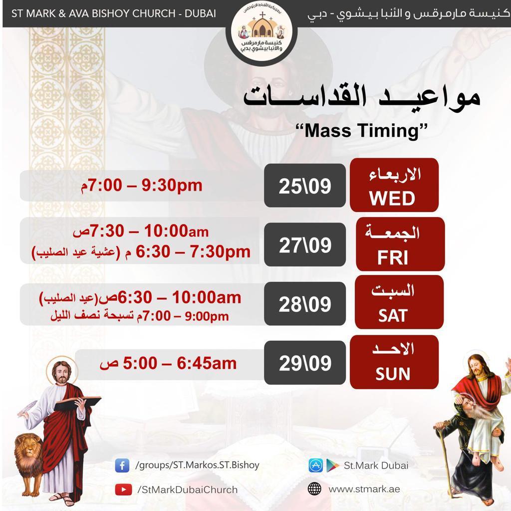 2019 مواعيد القداسات من 25 سبتمبر – 29 سبتمبر