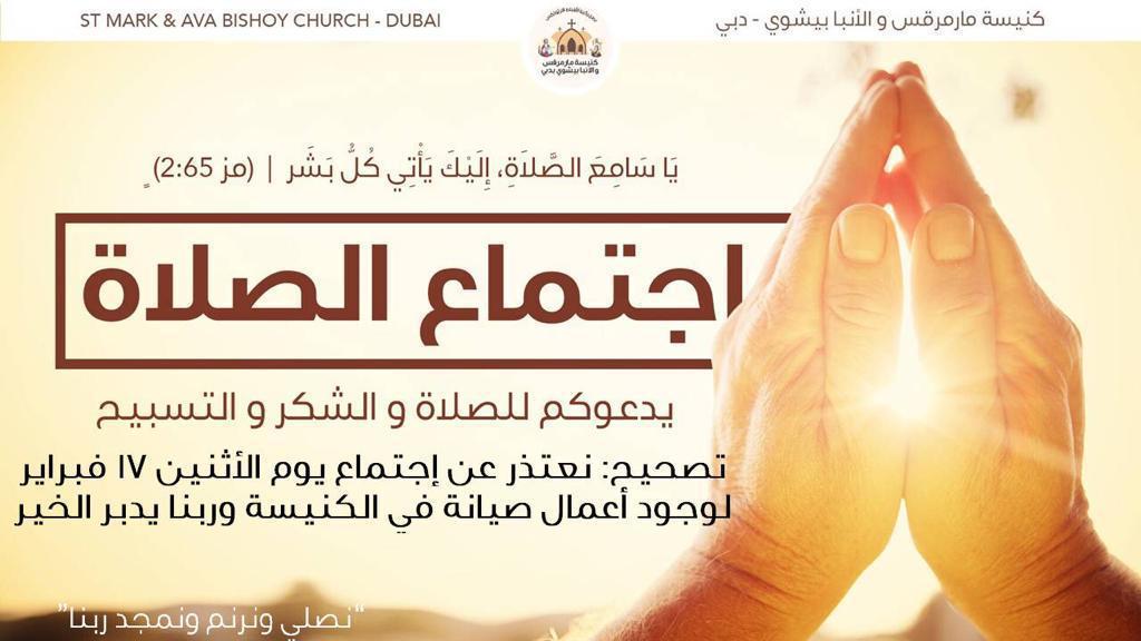 مواعيد القداسات من ٢٤ فبراير – ١ مارس ٢٠٢٠