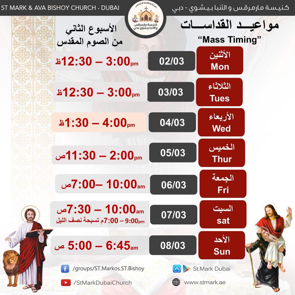 مواعيد القداسات من ٢ مارس – ٨ مارس ٢٠٢٠