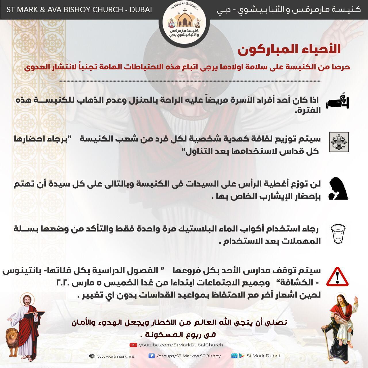 مواعيد القداسات من ٩ مارس – ١٥ مارس ٢٠٢٠