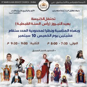 أخبار الكنيسة مواعيد القداسات الأسبوعية من 12 سبتمبر – 17 سبتمبر اقرأ المزيد » سبتمبر 11, 2020 لا توجد تعليقات